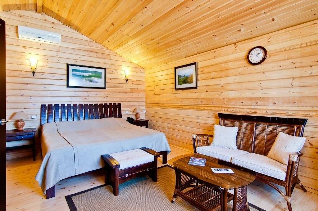 Фото номера Бунгало стандарт с 1 двуспальной кроватью (вид на бассейн) В Гостинице Золотая Бухта Анапа